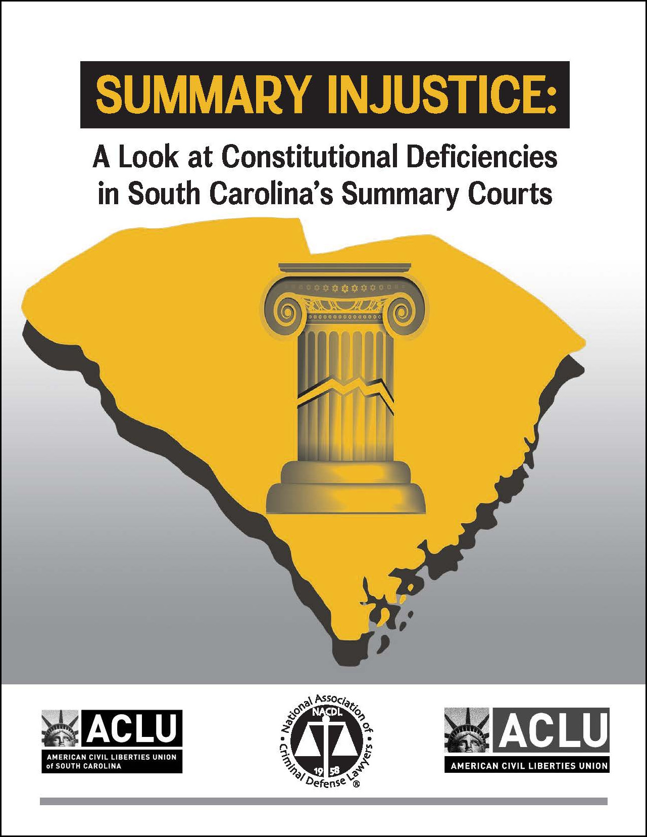 Following disturbing reports of South Carolina courts in which those accused of crimes were charged, prosecuted, and in some instances, incarcerated, without a lawyer, NACDL, in partnership with the ACLU and the ACLU of South Carolina sought to examine what was occurring first-hand. Over the course of 8 months (Dec.2014 to July 2015) representatives of the 3 organizations conducted court observations in 27 summary courts throughout South Carolina.