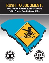 In response to disturbing stories of constitutional violations uncovered by NACDL and ACLU attorneys documented in 2016’s Summary Injustice report, NACDL undertook additional investigation of South Carolina’s summary courts. Law students and legal professionals gathered information about court proceedings in five South Carolina counties over three months in the winter and spring of 2016, the results of which are published in this follow-up report. Each day, the team observed court hearings in various venues, observing individuals charged with everything from shoplifting to driving offenses to unlawful possession of tobacco and alcohol. In every court studied for this report, the team found egregious, repeated constitutional violations happening daily and in hundreds of cases. In the months of court watching and data collection, researchers documented numerous findings, all of which are set forth in the Rush to Judgment report.
