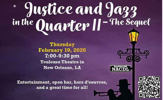 Justice and Jazz in the Quarter - II - The Sequel! NACDL's Foundation for Criminal Justice (NFCJ) Party and Fundraising Reception (Ticketed Event) Location: The Toulouse Theatre, 615 Toulouse St, New Orleans, LA 70130 More details and purchase tickets at: NFCJ.org/NOLA26 |